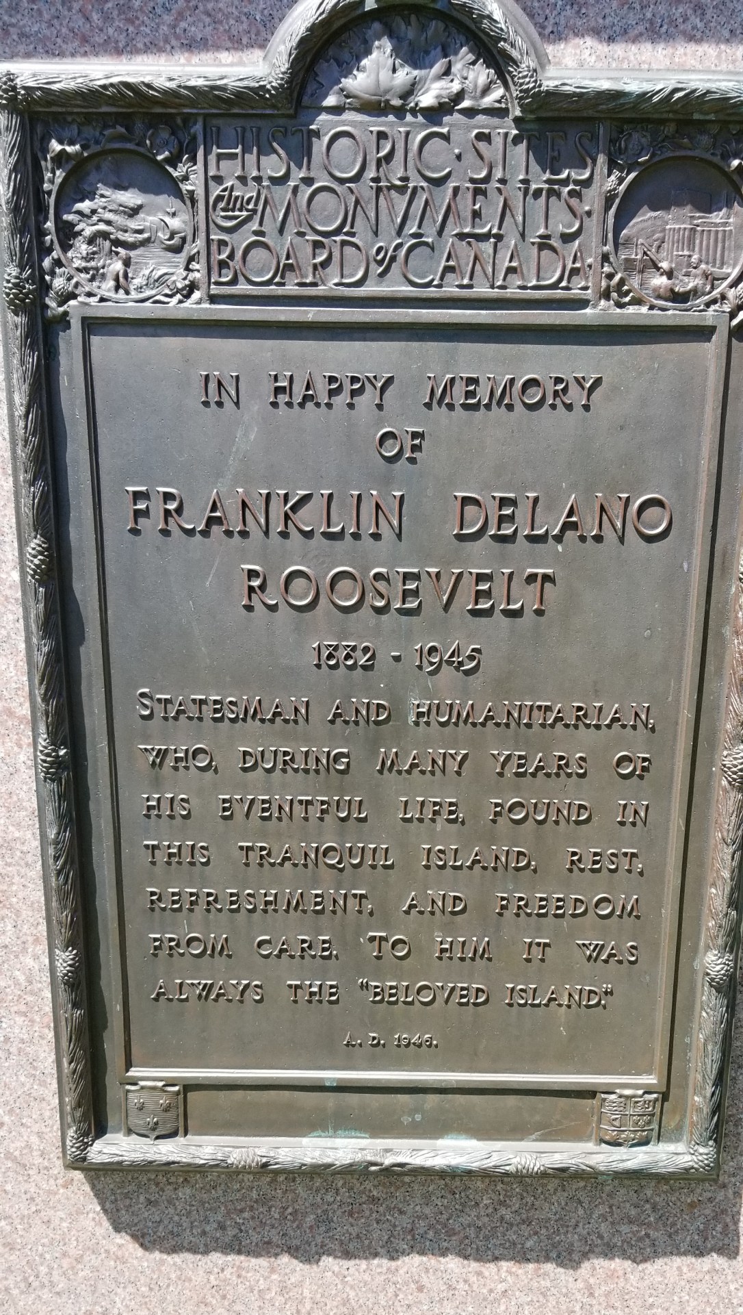 Memorial to FDR outside public library in Campo