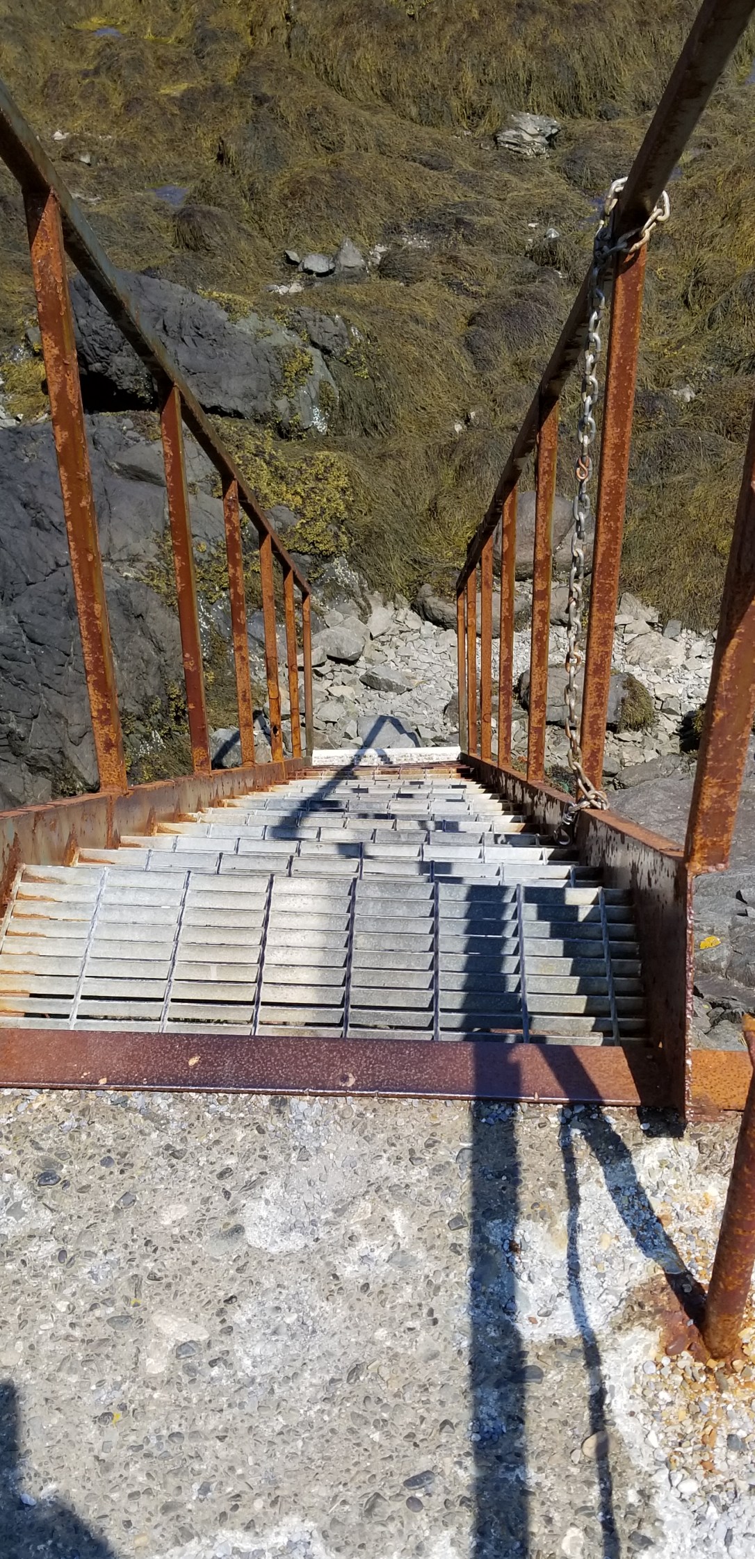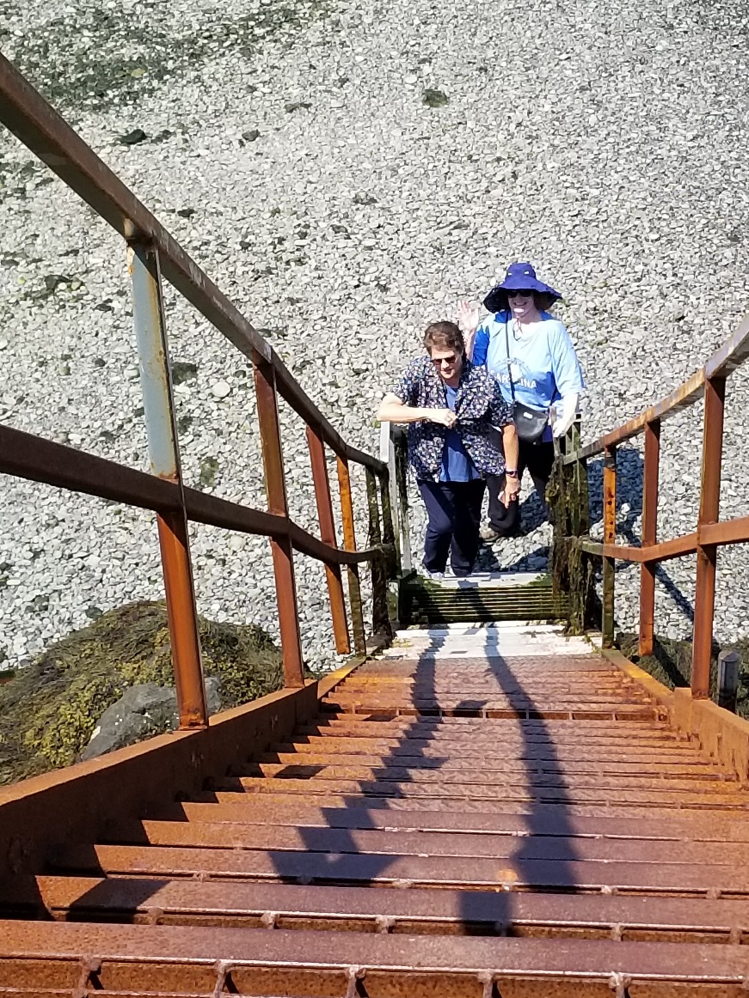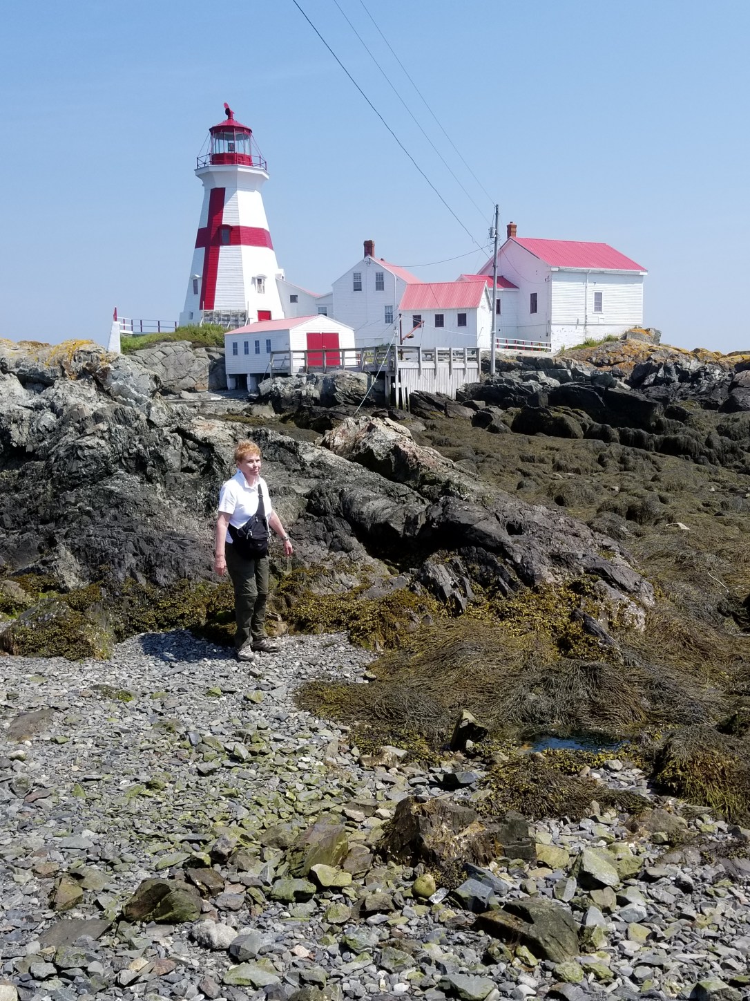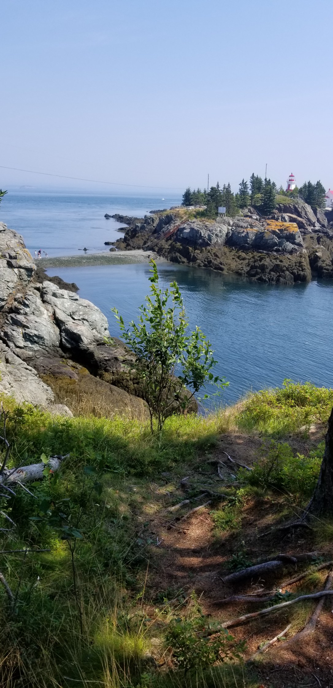Down 20 steps, cross rocky-seaweed sandbar, up 40+ steps, cross bridge, down 20+ steps, hicked to the lighthouse..whew..but oh so worth the trek