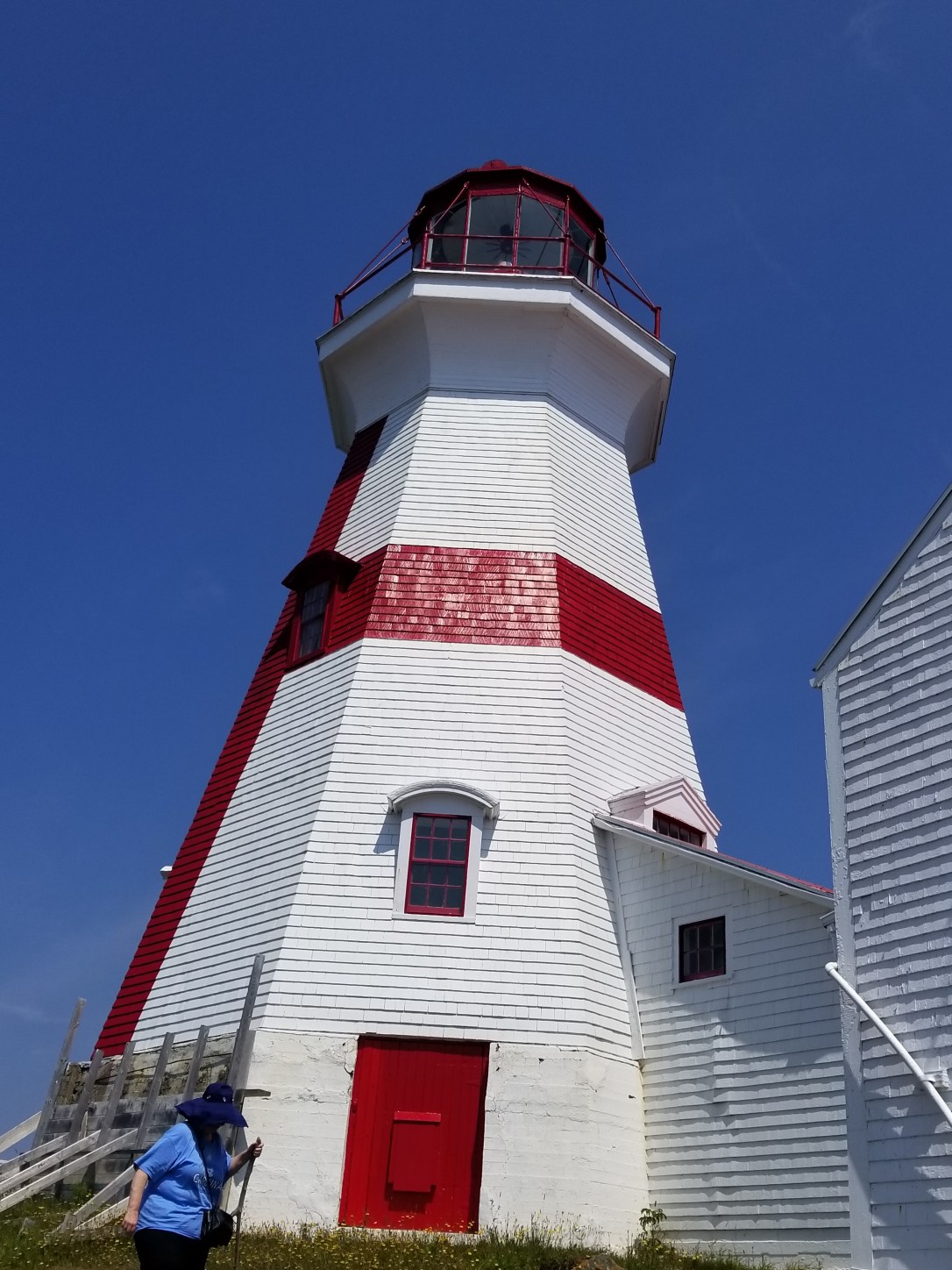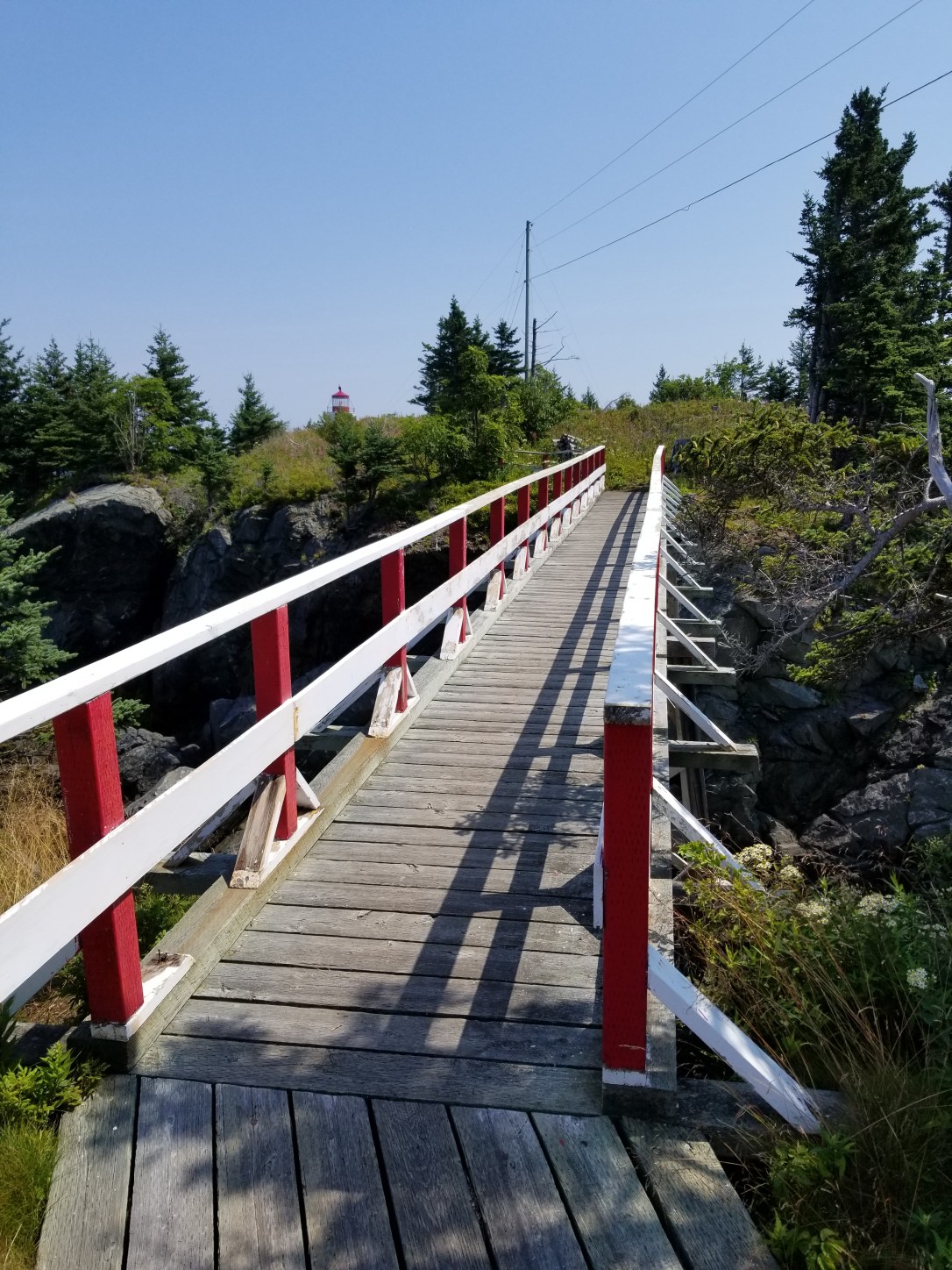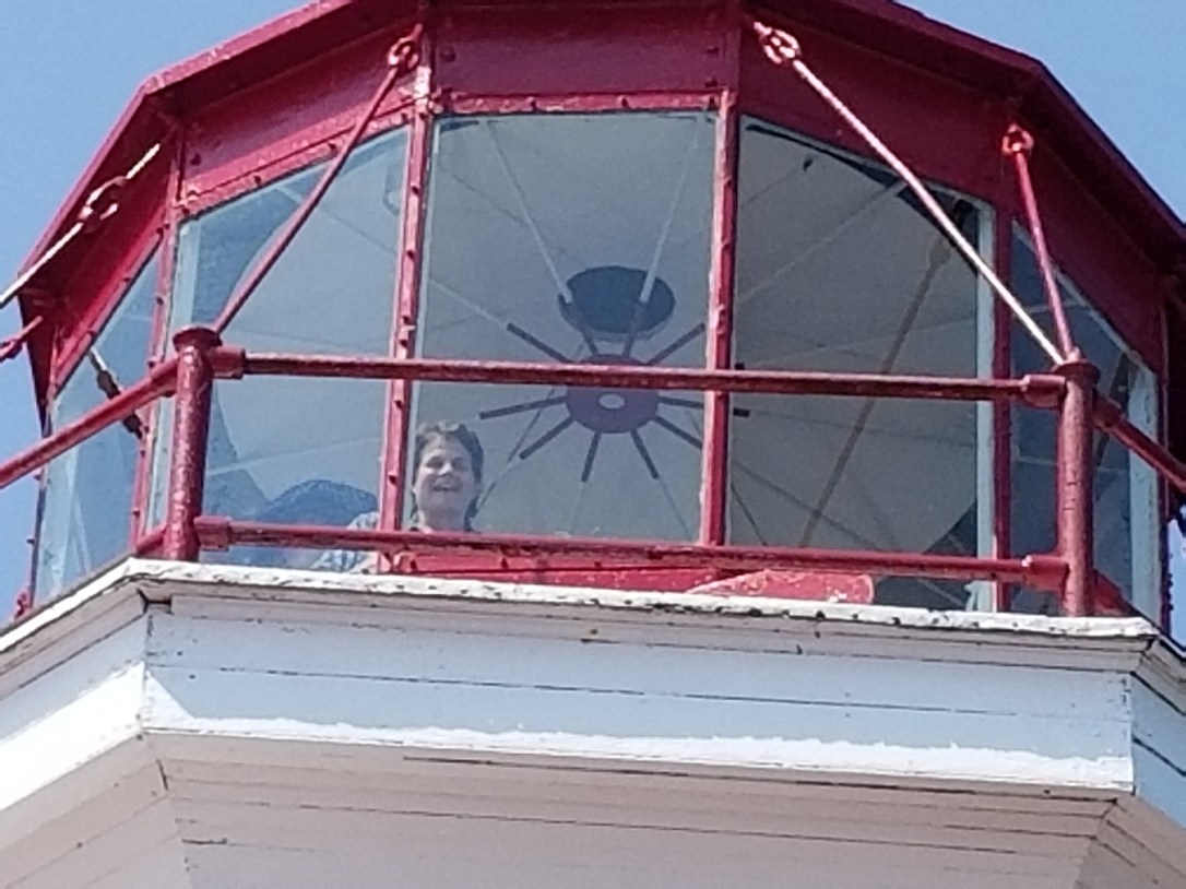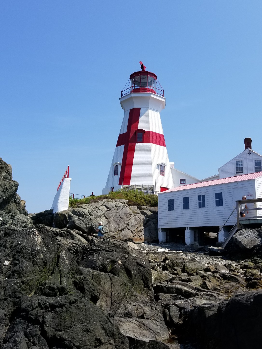 Down 20 steps, cross rocky-seaweed sandbar, up 40+ steps, cross bridge, down 20+ steps, hicked to the lighthouse..whew..but oh so worth the trek