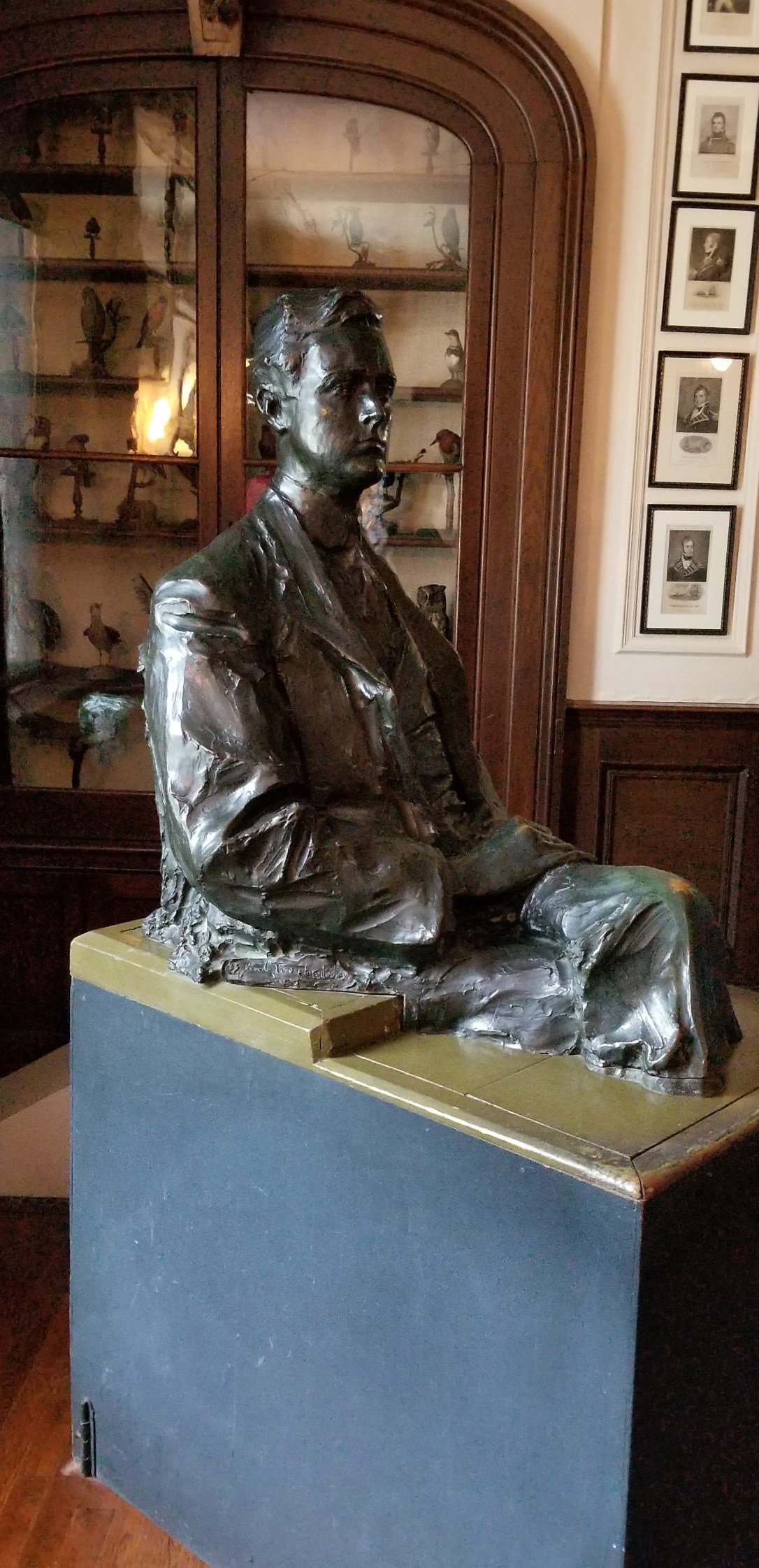 This statue of FDR at age 29 is in the main room. It depicts FDR without legs and sitting in a kitchen chair.