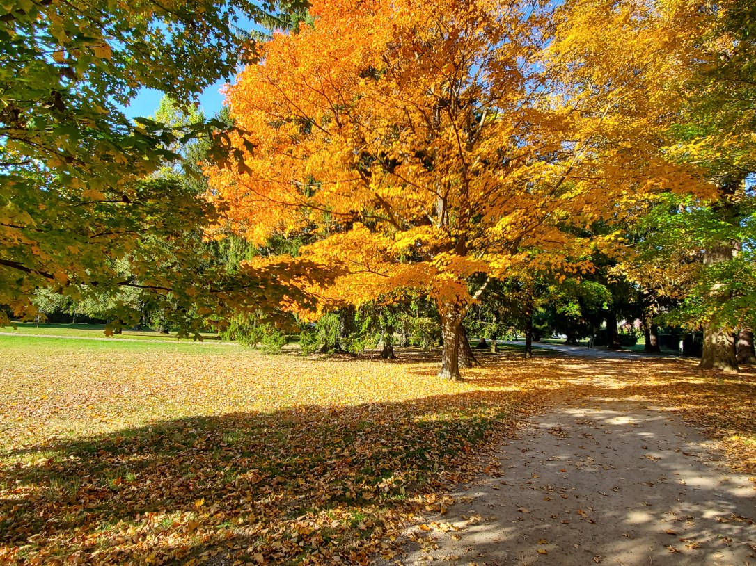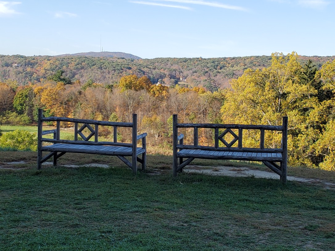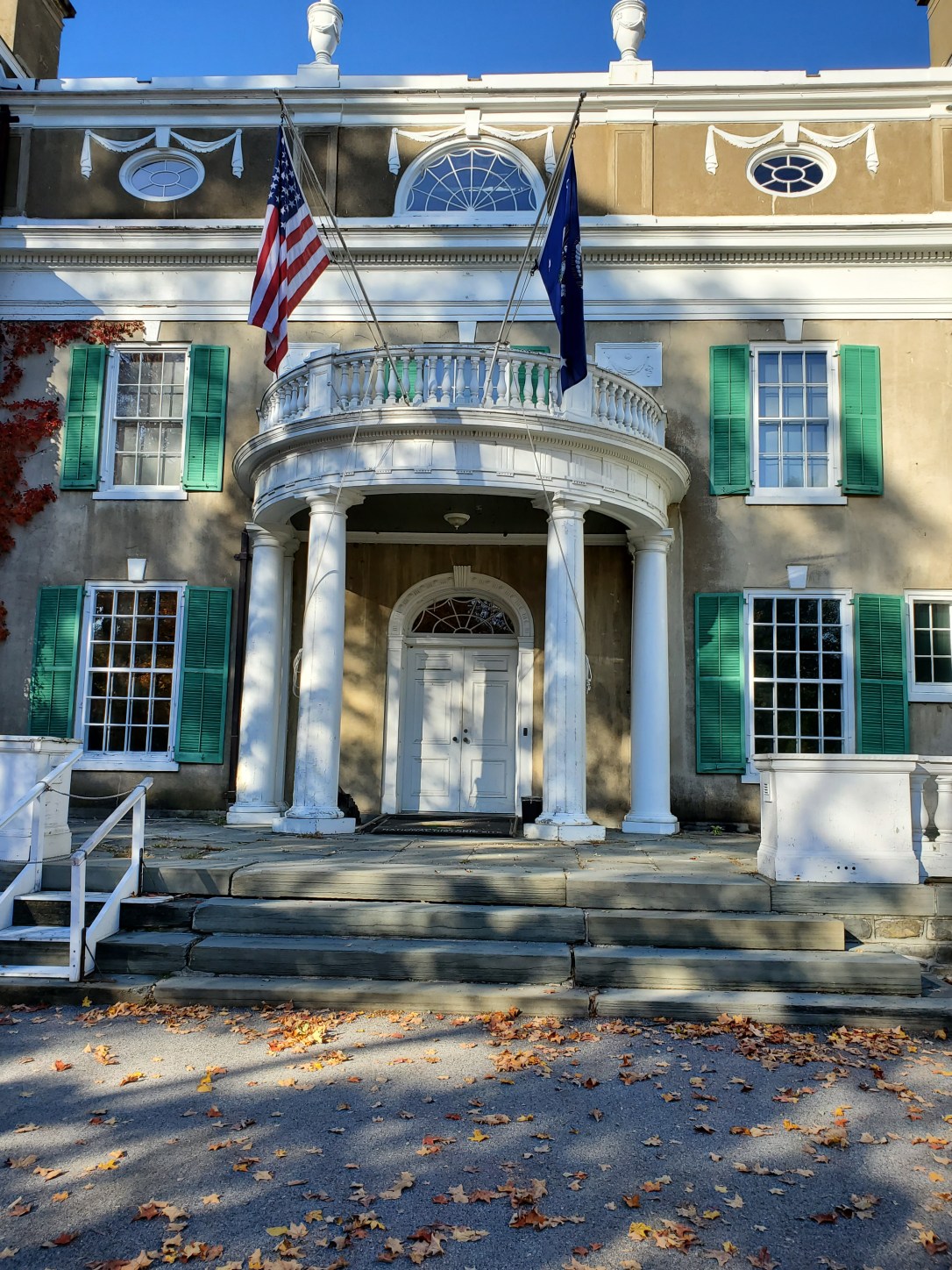 Another gorgeous day. As usual, my morning began with a walk through the beautiful grounds. The driveway, the colorful trees, hay bales, driveway gates, the benches, Springwood, the Rose garden and gravesite.
