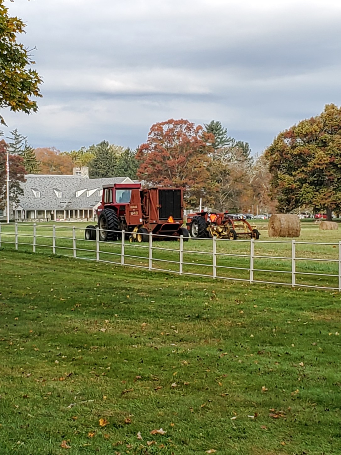 Working on hay bales