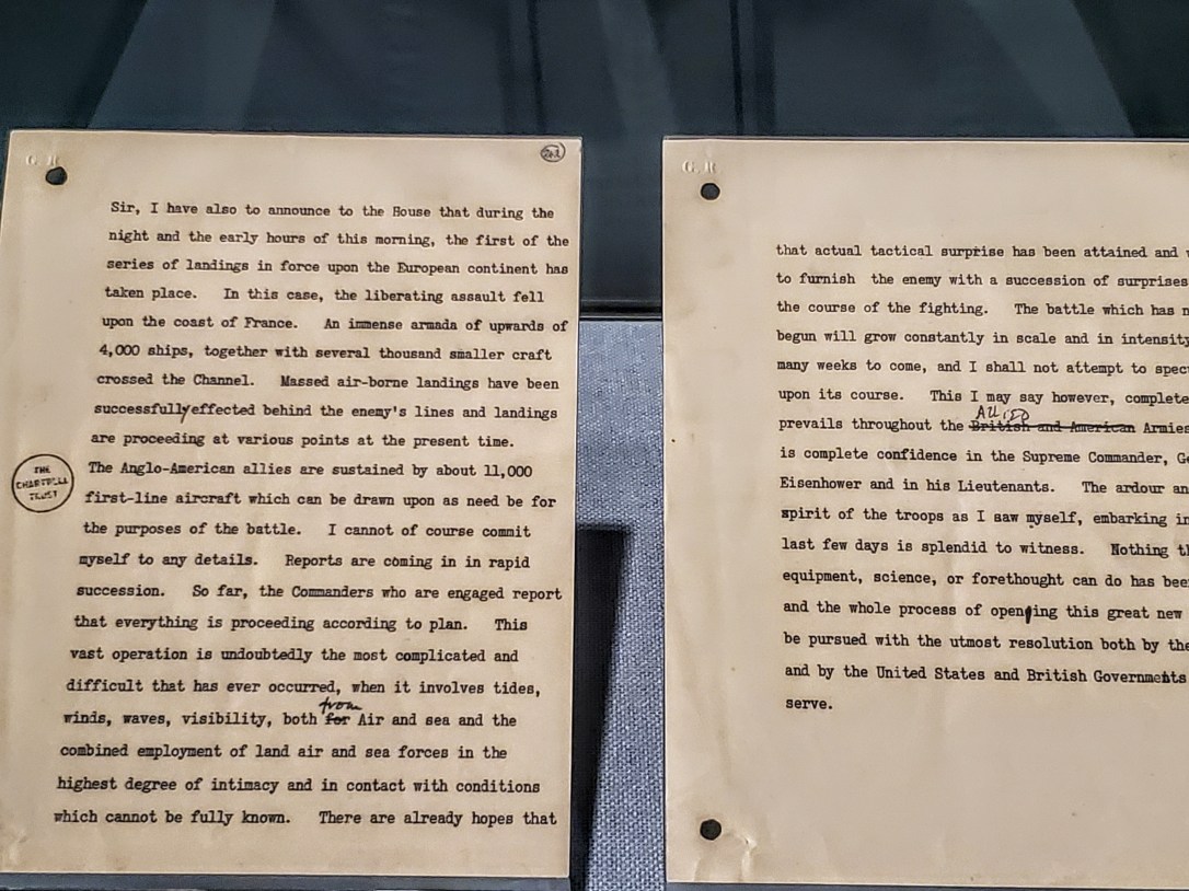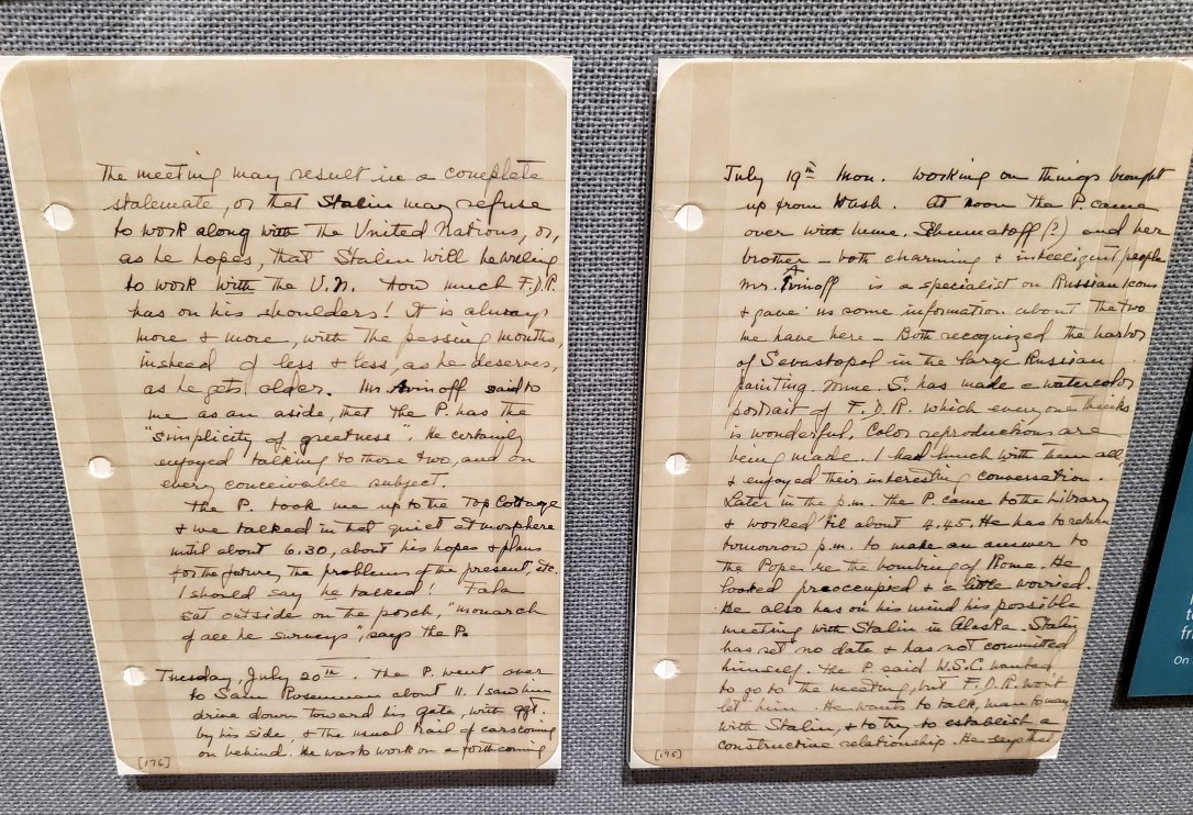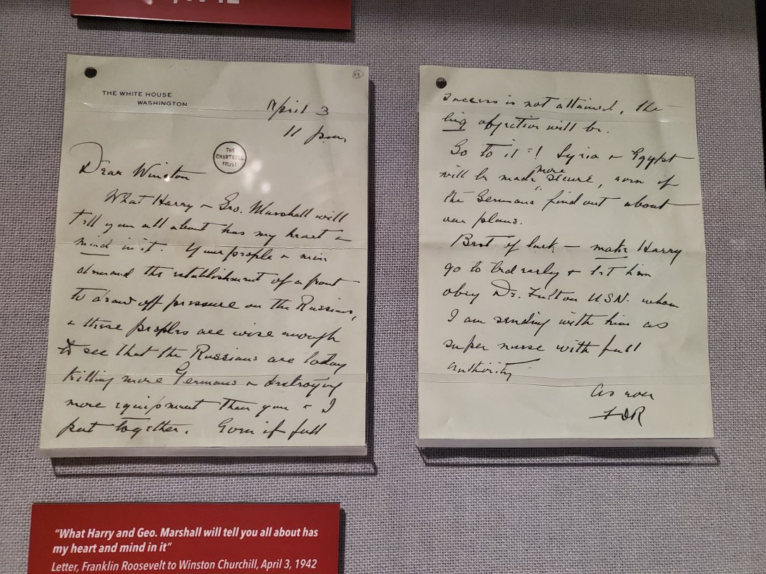 I am in “heaven”. Only hogs I have seen are on FDR”s desk. Tonight will post part 3 and final on exhibit..it is so moving..FDR”s death and the sadness of Churchill