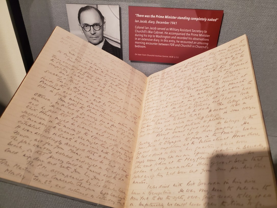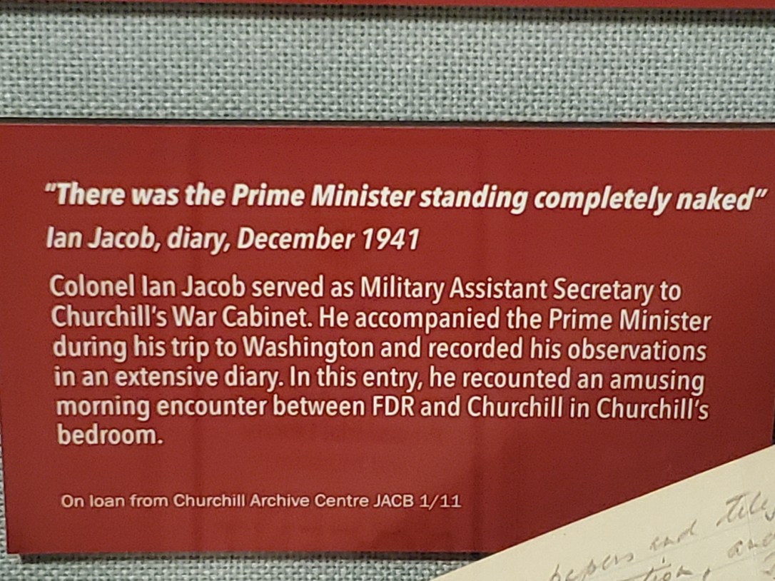 and on this visit…Churchill (stepping naked from his bath): “The Prime Minister of Great Britain has nothing to hide from the President of the United States.” **