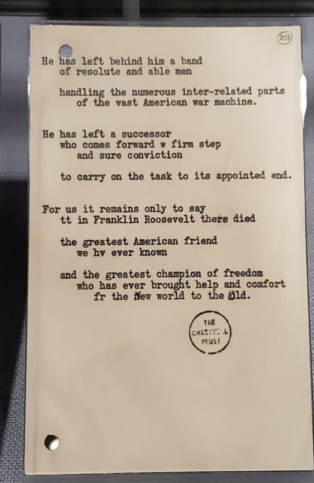 Churchill’s poem brought tears. Two Remarkable men..thank God for their friendship and leadership