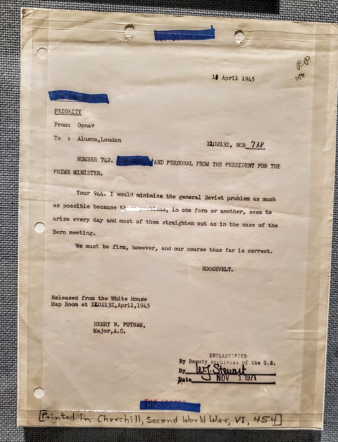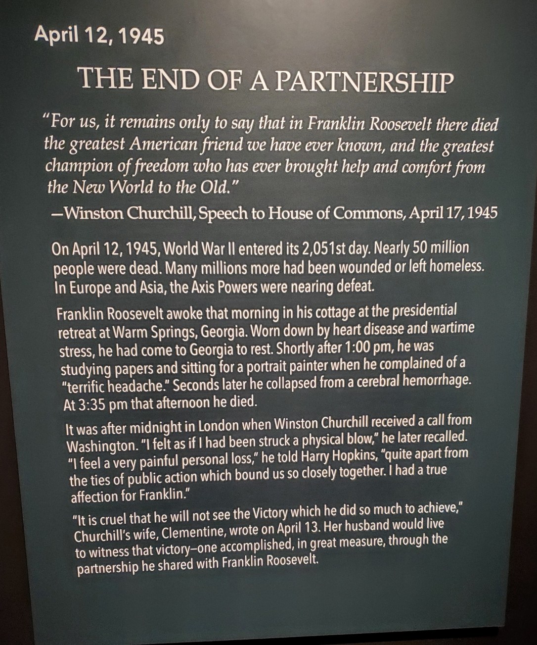 On the day before FDR died, he sent this message to Churchill.