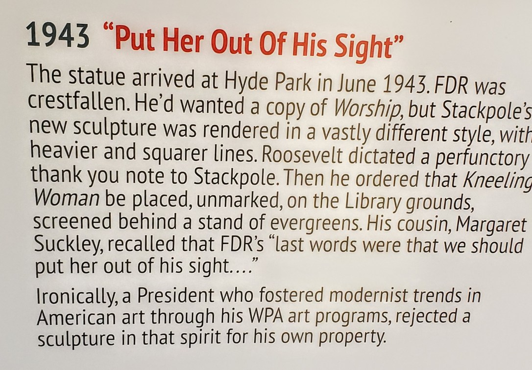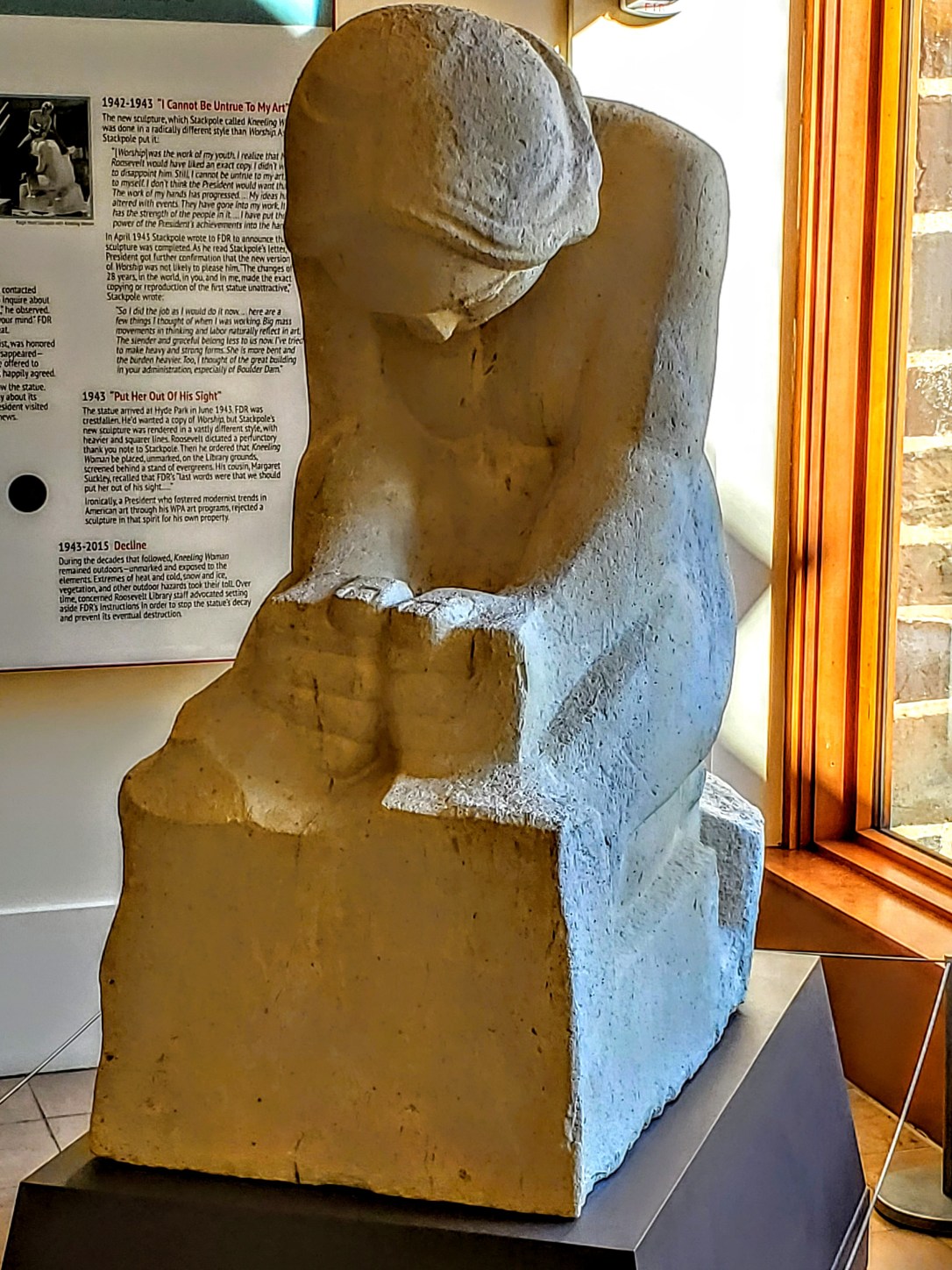 Kneeling Woman is now housed in the very back corner of the Visitors Center. Yout have to look really hard to find her. π