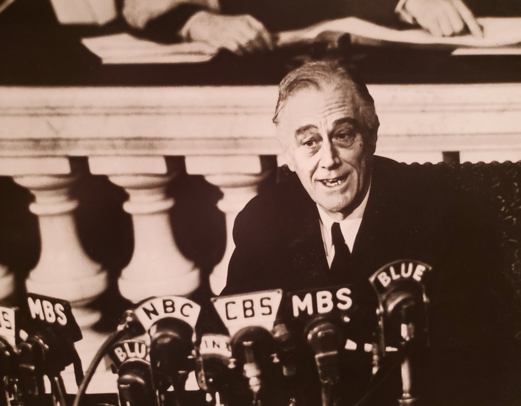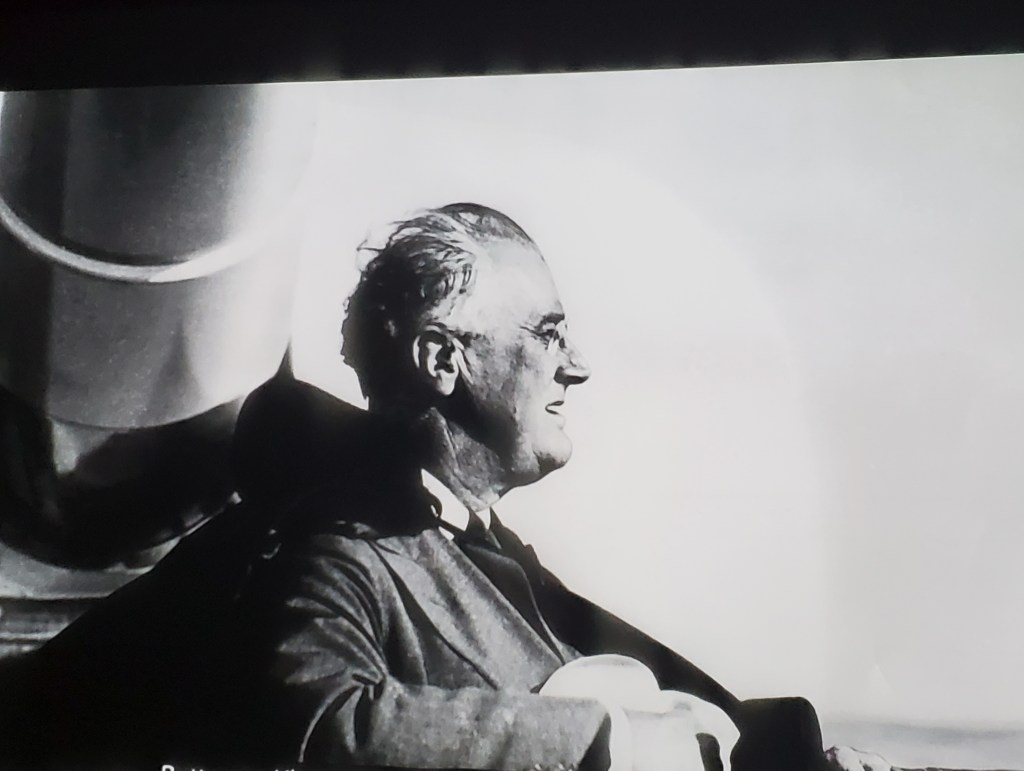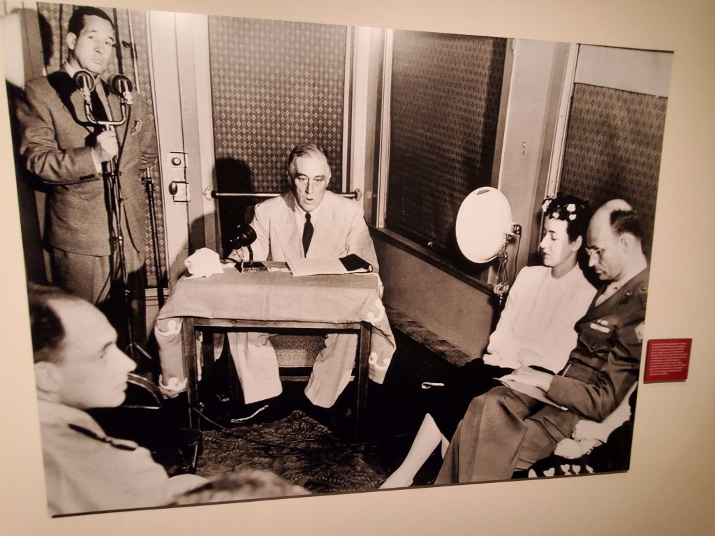 Franklin D. Roosevelt accepts nomination by DNC at Chicago from train at San Diego, California with Mr. & Mrs. James Roosevelt, with his cardiologist,Dr. Bruenn July 20 1944.