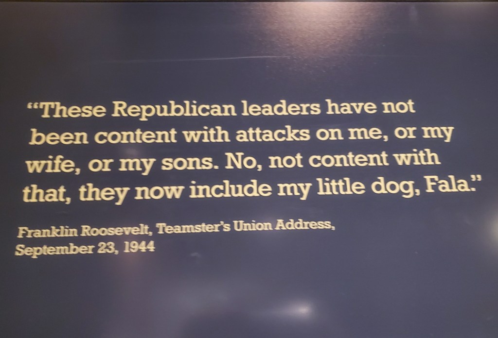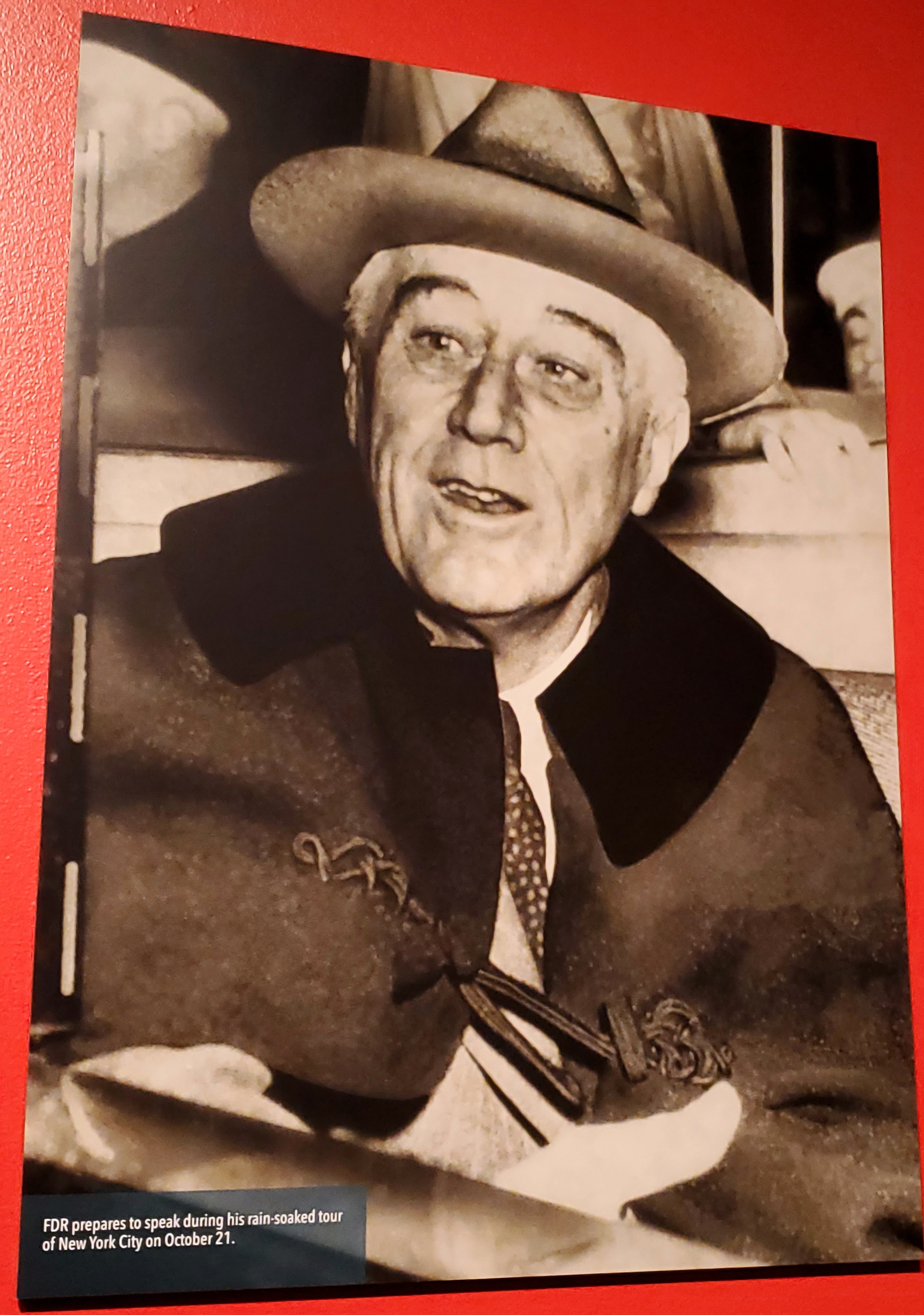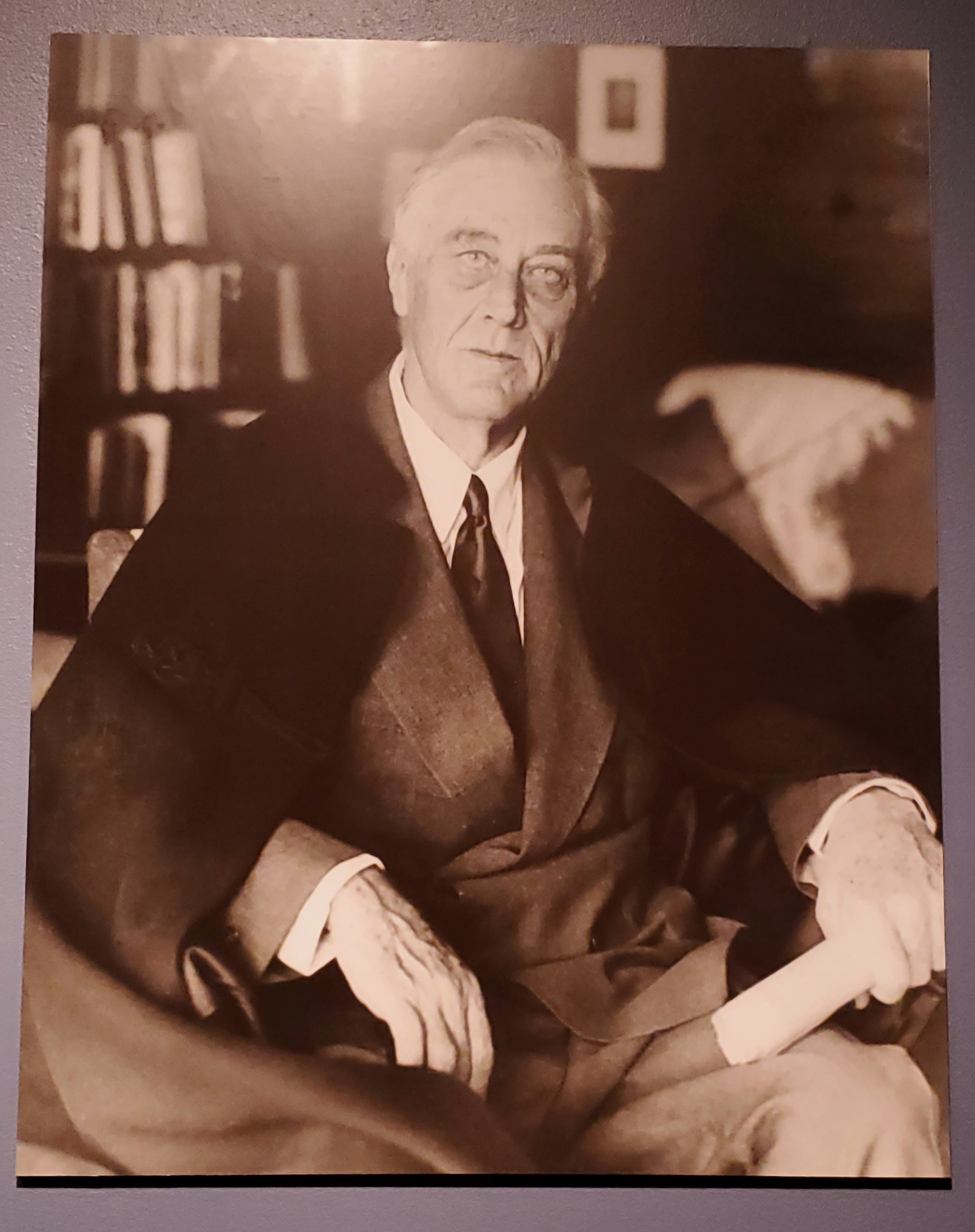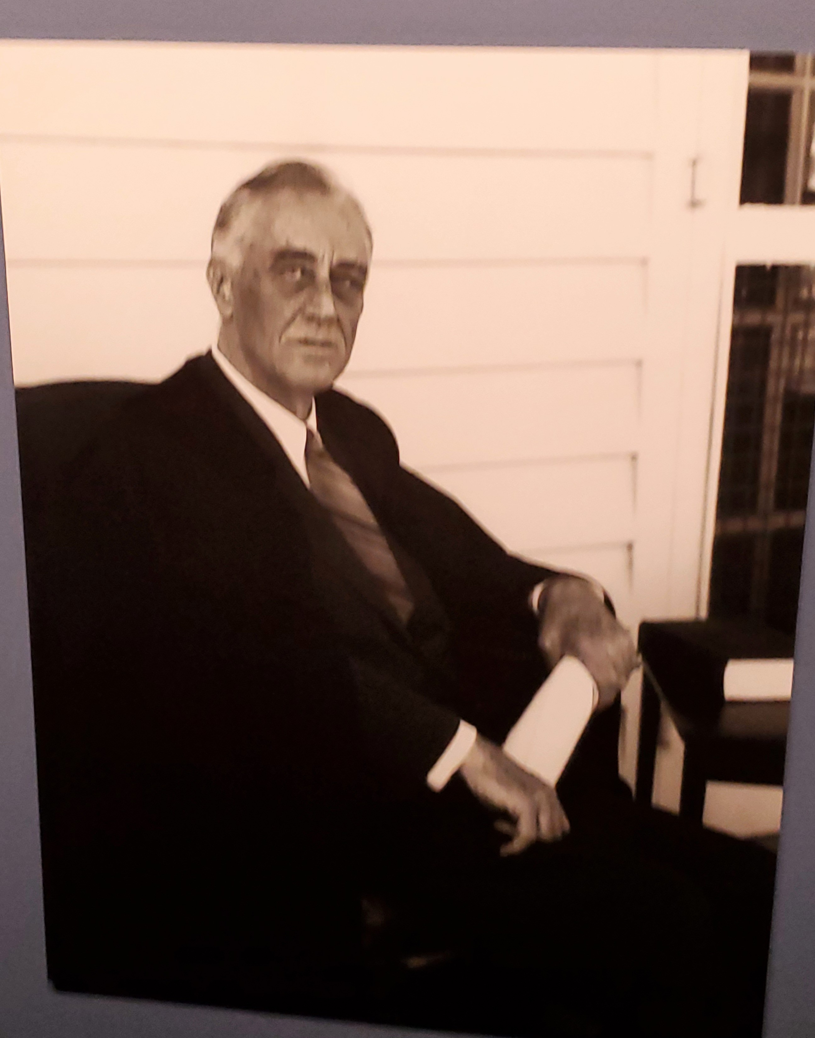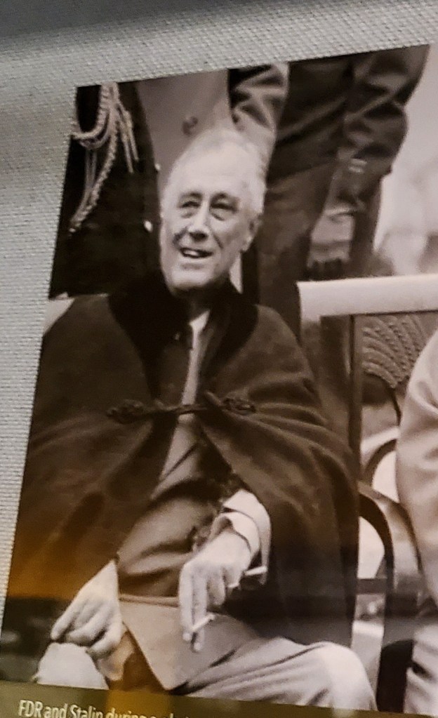 Speech in August 1944. While speaking, FDR suffered an attack of Angina. His cardiologist, said “scared the hell out of us.”“his Scotch soul was furious. He has not been the same dog since”. Sept 1944Fala Speech, Sept. 1944Campaign in the rain in NYC, October 1944.7 cigarettes remained in this pack. A heavy smoker averaging 3 packs a day. Camel was preferred brand.Yalta, Boat Cloak, Cigarette February 1945Address to Congress, “Ten Pounds of Steel” March 1945Final photos of FDR, taken in Warm Springs, Georgia on April 11, 1945. FDR died the next day, April 12. 1945Archivist at FDR Library “think” that FDR is holding some official papers from the State Dept. that had arrived in the mail. While in Warm Springs, FDR worked on what would become the “Undelivered Address”.